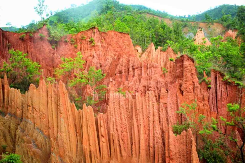 धमिराको गोलो जस्तै देखिने रातो माटोको चुच्चो परेको ढिस्कोहरु । शिर उठाएर आकाश पट्टी हेर्दा देखिने अग्ला–अग्ला रातो माटोकै चुचुरो । आदरणीय तारा डिम्डुङको फेसबुकमा भेटेको यस्तै दृश्यले तान्यो मेरो मन अनि मेरो पाईला अघि बढ्यो लालपार्क तफ । बाटो पहिल्याउन सहयोग गर्नु भयो, तारा डिम्डुङले।