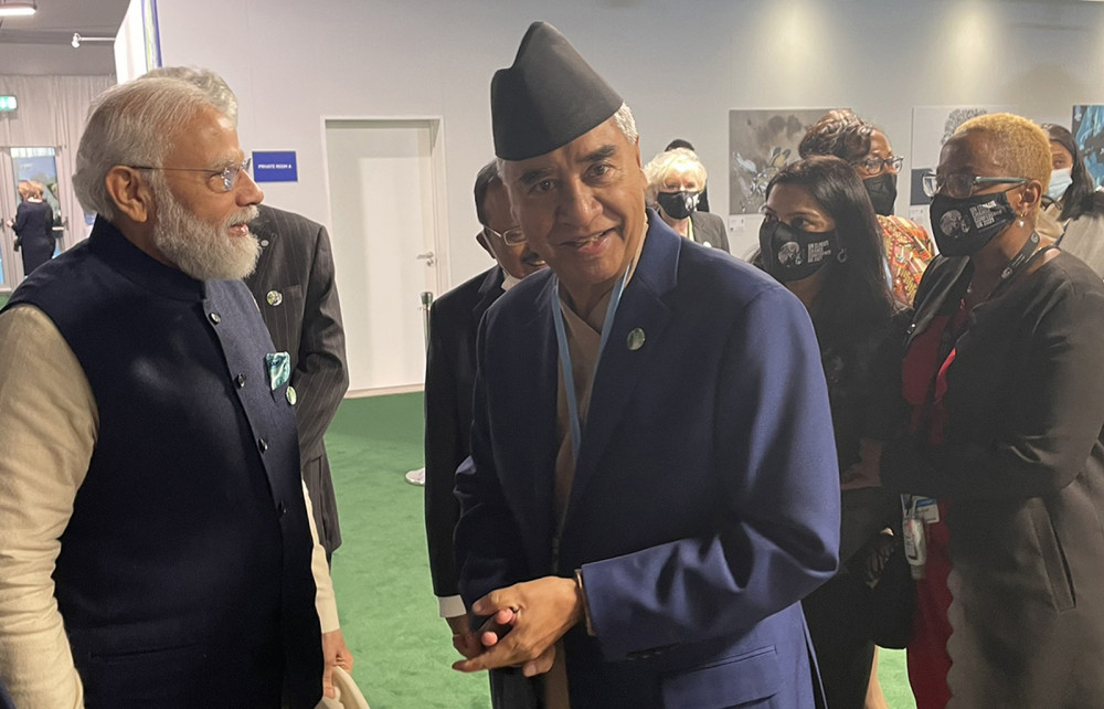 यसअघि हिजो जलवायु सम्मेलनका क्रममा दुई नेताबीच अनौपचारिक भेटवार्ता भएको थियो । जलवायु सम्मेलनकै क्रममा प्रधानमन्त्री देउवाले भारतीय प्रधानमन्त्री मोदीसहित बेलायतका प्रधानमन्त्री बोरिस जोनसन, राष्ट्रसंघीय महासचिव एन्टोनियो गुटरेसलगायत विश्वका नेताहरुसँग अनौपचारिक भेटघाट गर्नु भएको थियो ।
