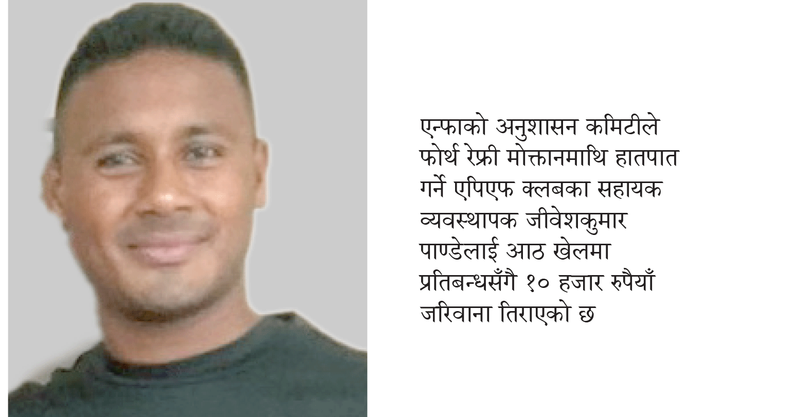 रेफ्री कुट्ने एपिएफका सहायक व्यवस्थापक पाण्डेलाई आठ खेलको प्रतिबन्ध