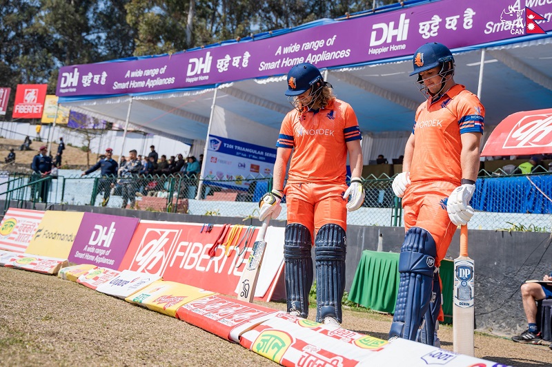 टी–२० त्रिदेशीय क्रिकेट शृङ्खलामा नेपालसँगको खेलमा नेदरल्यान्ड्स ब्याटिङमा