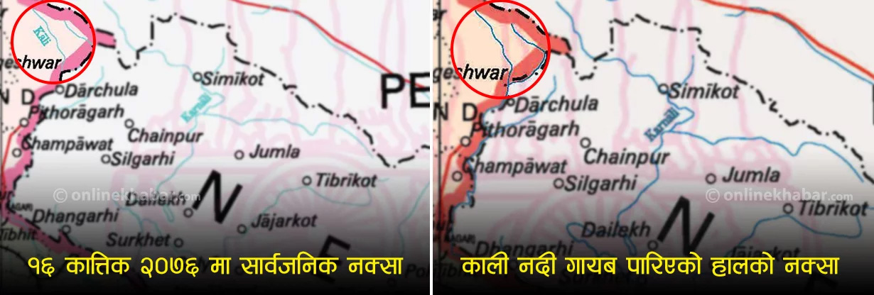 कालापानीमा भारतको अर्को बदमासी, नयाँ नक्सामा काली नदी गायब