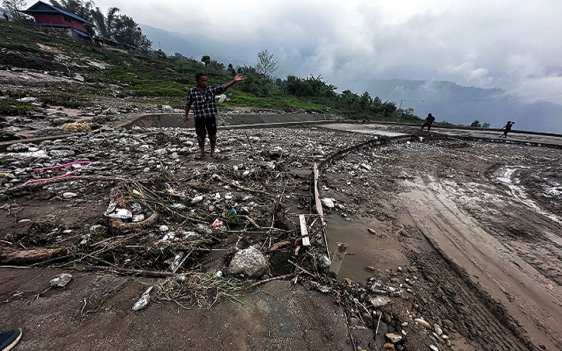 सङ्खुवासभाको खाँदबारी–नुम सडक खण्डमा वर्षाले क्षति