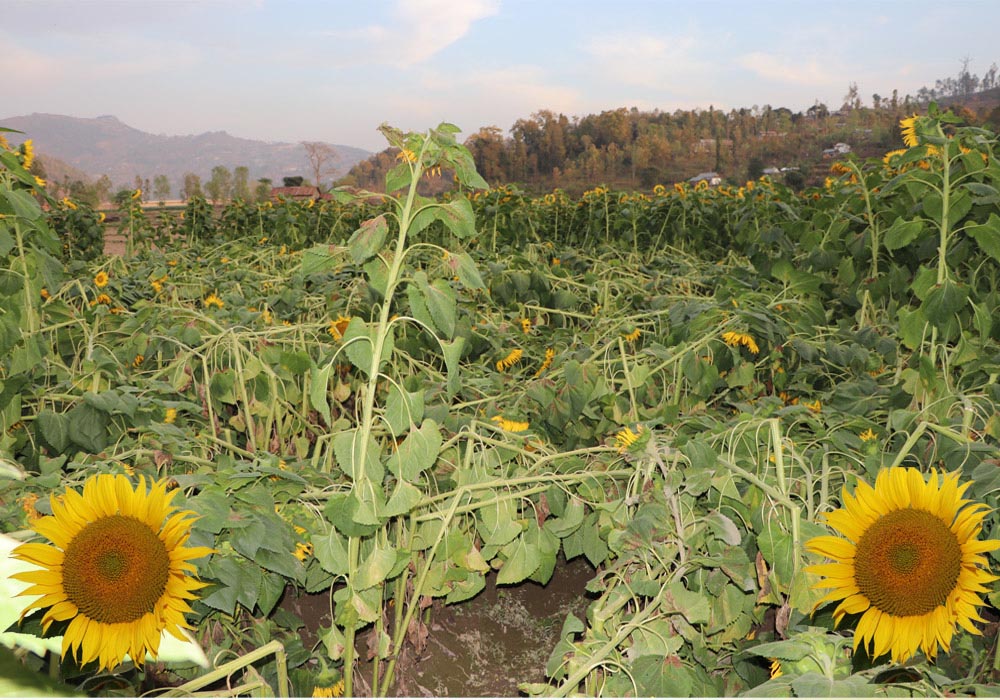 मकवानपुरगढीमा लगाइएको सूर्यमुखी खेतीमा हावाले क्षति